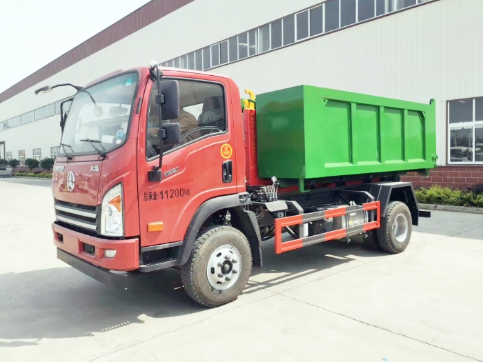 運(yùn)輸介質(zhì)為:建筑垃圾,主要是利用勾臂垃圾車(chē)底盤(pán)自帶的發(fā)動(dòng)機(jī)為動(dòng)力,通過(guò)變速箱上安裝的取力器,取力器處安裝油泵,采用液壓機(jī)構(gòu)手動(dòng)或電控來(lái)實(shí)現(xiàn)箱體的上鉤、下卸、自卸等功能。車(chē)輛的箱體采用優(yōu)質(zhì)炭鋼板全密封焊接結(jié)構(gòu),具有重量輕、不產(chǎn)生二次污染等優(yōu)點(diǎn)。