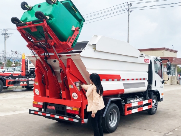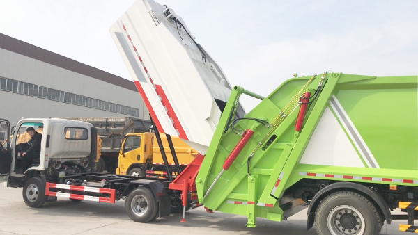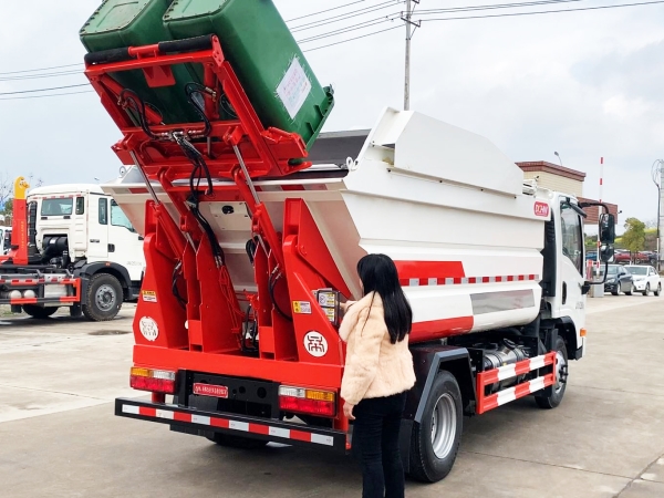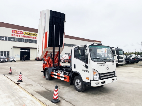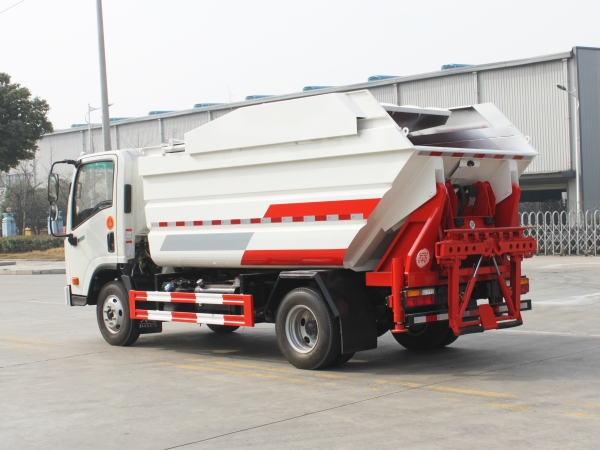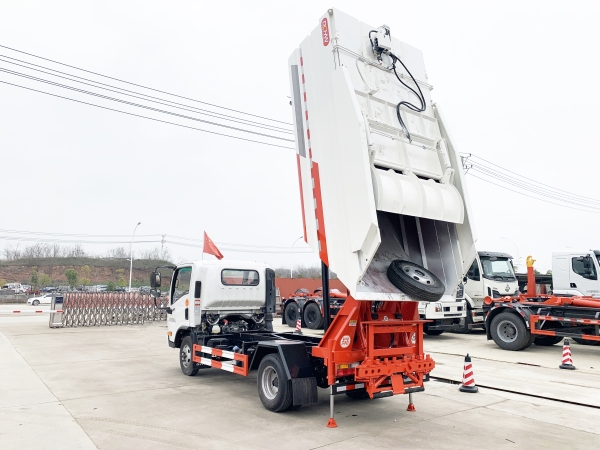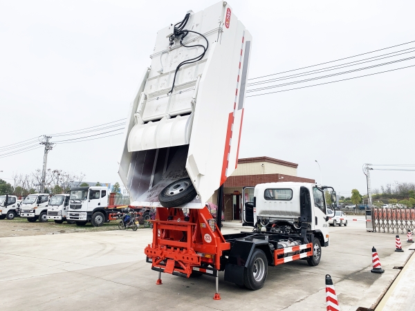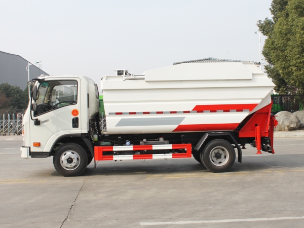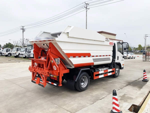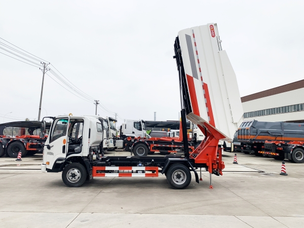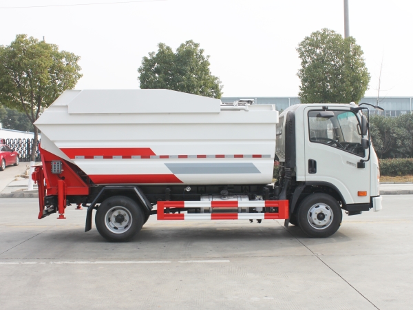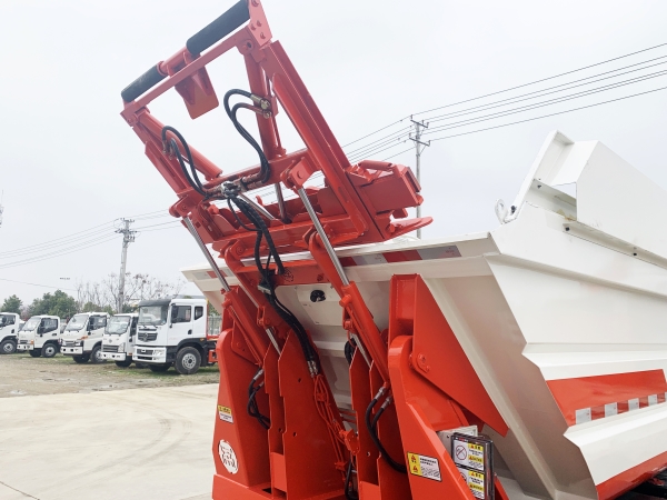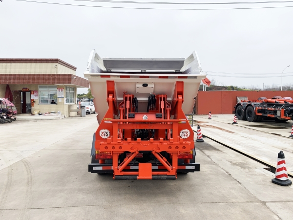 自裝卸式垃圾車在底盤的基礎(chǔ)上,加裝垃圾箱體、連接附件、防護(hù)欄及液壓系統(tǒng)等裝置。具有操作安全、使用性能穩(wěn)定、返修率低、售后服務(wù)及時(shí)周到等特點(diǎn)。本產(chǎn)品主要用于收集與轉(zhuǎn)運(yùn)城市住宅小區(qū)、鄉(xiāng)鎮(zhèn)街道等產(chǎn)生的生活垃圾。整車小巧靈活,行動(dòng)方便,適應(yīng)人流密集的商業(yè)區(qū)域和道路交通情況較差的城鄉(xiāng)地區(qū)。本車配有后掛桶進(jìn)料機(jī)構(gòu),在翻桶處操作,可與120L/240L/660L標(biāo)準(zhǔn)塑料桶對(duì)接。整車具有自卸功能,卸料方便。結(jié)構(gòu)結(jié)實(shí)耐腐 船型箱體結(jié)構(gòu)實(shí)現(xiàn)100%無(wú)泄漏;刮板進(jìn)料+壓縮 壓縮效率高;高位舉升自卸結(jié)構(gòu),卸料干凈 對(duì)接方便;多功能翻桶進(jìn)料機(jī)構(gòu) 進(jìn)料快捷穩(wěn)定;液壓系統(tǒng)穩(wěn)定可靠;自動(dòng)化程度高,電液聯(lián)合控制。