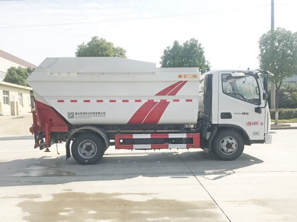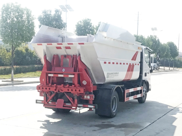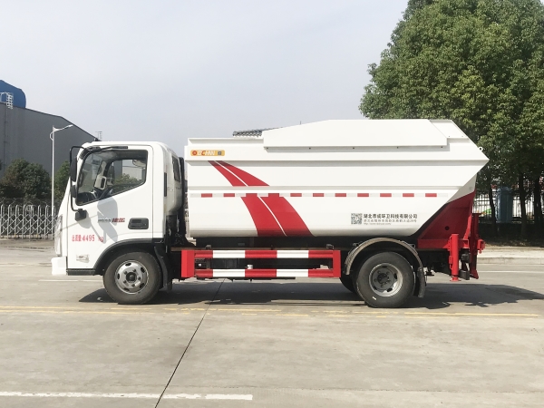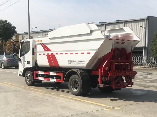 自裝卸式垃圾車在底盤的基礎(chǔ)上,加裝垃圾箱體、連接附件、防護(hù)欄及液壓系統(tǒng)等裝置。具有操作安全、使用性能穩(wěn)定、返修率低、售后服務(wù)及時周到等特點(diǎn)。本產(chǎn)品主要用于收集與轉(zhuǎn)運(yùn)城市住宅小區(qū)、鄉(xiāng)鎮(zhèn)街道等產(chǎn)生的生活垃圾。整車小巧靈活,行動方便,適應(yīng)人流密集的商業(yè)區(qū)域和道路交通情況較差的城鄉(xiāng)地區(qū)。本車配有后掛桶進(jìn)料機(jī)構(gòu),在翻桶處操作,可與120L/240L/660L標(biāo)準(zhǔn)塑料桶對接。整車具有自卸功能,卸料方便。結(jié)構(gòu)結(jié)實(shí)耐腐 船型箱體結(jié)構(gòu)實(shí)現(xiàn)100%無泄漏;刮板進(jìn)料+壓縮 壓縮效率高;高位舉升自卸結(jié)構(gòu),卸料干凈 對接方便;多功能翻桶進(jìn)料機(jī)構(gòu) 進(jìn)料快捷穩(wěn)定;液壓系統(tǒng)穩(wěn)定可靠;自動化程度高,電液聯(lián)合控制。