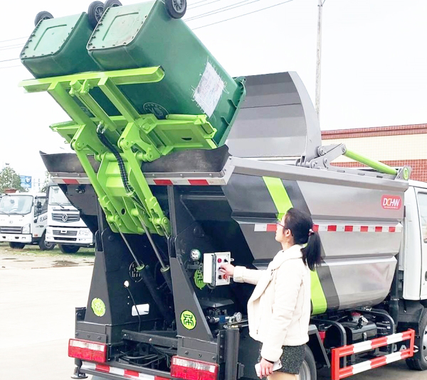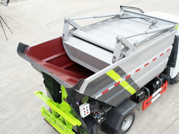 自裝卸式垃圾車在底盤的基礎(chǔ)上,加裝垃圾箱體、連接附件、防護(hù)欄及液壓系統(tǒng)等裝置。具有操作安全、使用性能穩(wěn)定、返修率低、售后服務(wù)及時(shí)周到等特點(diǎn)。本產(chǎn)品主要用于收集與轉(zhuǎn)運(yùn)城市住宅小區(qū)、鄉(xiāng)鎮(zhèn)街道等產(chǎn)生的生活垃圾。整車小巧靈活,行動(dòng)方便,適應(yīng)人流密集的商業(yè)區(qū)域和道路交通情況較差的城鄉(xiāng)地區(qū)。本車配有后掛桶進(jìn)料機(jī)構(gòu),在翻桶處操作,可與120L/240L/660L標(biāo)準(zhǔn)塑料桶對(duì)接。整車具有自卸功能,卸料方便。結(jié)構(gòu)結(jié)實(shí)耐腐 船型箱體結(jié)構(gòu)實(shí)現(xiàn)100%無泄漏;刮板進(jìn)料+壓縮 壓縮效率高;高位舉升自卸結(jié)構(gòu),卸料干凈 對(duì)接方便;多功能翻桶進(jìn)料機(jī)構(gòu) 進(jìn)料快捷穩(wěn)定;液壓系統(tǒng)穩(wěn)定可靠;自動(dòng)化程度高,電液聯(lián)合控制。