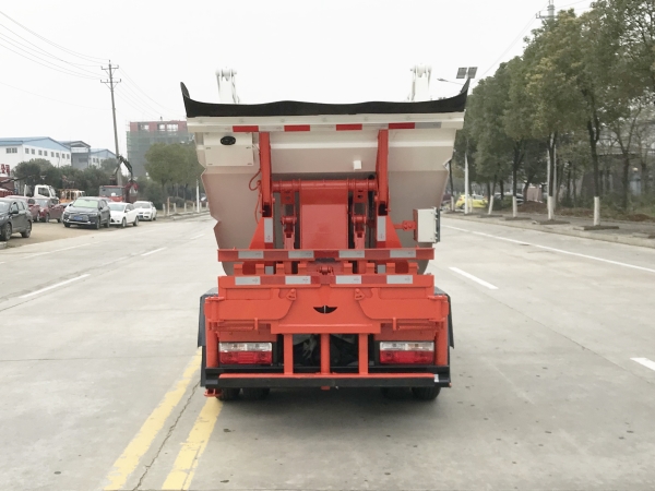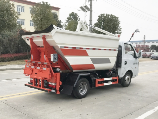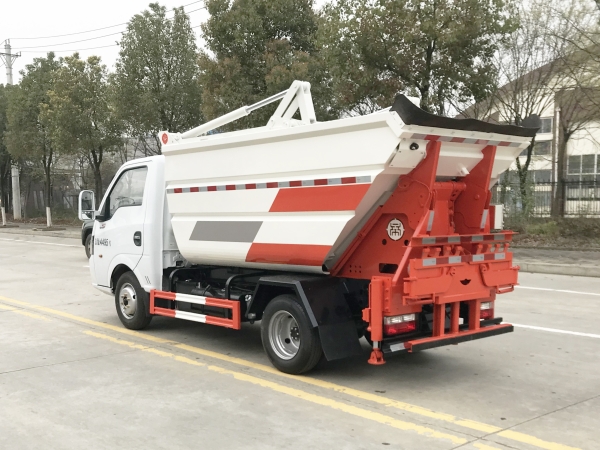自裝卸式垃圾車在底盤的基礎(chǔ)上,加裝垃圾箱體、連接附件、防護欄及液壓系統(tǒng)等裝置。具有操作安全、使用性能穩(wěn)定、返修率低、售后服務(wù)及時周到等特點。本產(chǎn)品主要用于收集與轉(zhuǎn)運城市住宅小區(qū)、鄉(xiāng)鎮(zhèn)街道等產(chǎn)生的生活垃圾。整車小巧靈活,行動方便,適應(yīng)人流密集的商業(yè)區(qū)域和道路交通情況較差的城鄉(xiāng)地區(qū)。本車配有后掛桶進料機構(gòu),在翻桶處操作,可與120L/240L/660L標準塑料桶對接。整車具有自卸功能,卸料方便。結(jié)構(gòu)結(jié)實耐腐 船型箱體結(jié)構(gòu)實現(xiàn)100%無泄漏;刮板進料+壓縮 壓縮效率高;高位舉升自卸結(jié)構(gòu),卸料干凈 對接方便;多功能翻桶進料機構(gòu) 進料快捷穩(wěn)定;液壓系統(tǒng)穩(wěn)定可靠;自動化程度高,電液聯(lián)合控制。