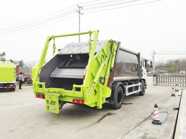 壓縮式垃圾車由密封式垃圾廂、液壓系統(tǒng)、操作系統(tǒng)組成。整車為全密封型,自行壓縮、自行傾倒、壓縮過程中的污水全部進入污水廂,較為徹底的解決了垃圾運輸過程中的二次污染的問題,避免了給人們帶來不便,關鍵部件采用進口部件,具有壓力大、密封性好、操作方便、安全等優(yōu)點。 可選配后掛桶翻轉(zhuǎn)機構(gòu)或垃圾斗翻轉(zhuǎn)機構(gòu)。 專門用于收集城鎮(zhèn)居民生活垃圾和其他可壓縮垃圾的的環(huán)衛(wèi)專用車輛,壓縮式垃圾車由密封式垃圾箱、液壓系統(tǒng)、操作系統(tǒng)組成。整車為全密封型,自行壓縮、自行傾倒、壓縮過程中的污水全部進入污水箱,較為徹底的解決了垃圾運輸過程中的二次污染的問題,關鍵元器件采用進口件,具有壓力大、密封性好、操作方便、安全省力等優(yōu)點。 主要有后裝壓縮式垃圾車和測裝壓縮式垃圾車,其中后裝壓縮式垃圾車可選配后掛桶收集裝置、鏟斗收集裝置、擺臂收集裝置、掛鐵通收集裝置,用戶可以根據(jù)不同需要選擇不同的收集裝置。