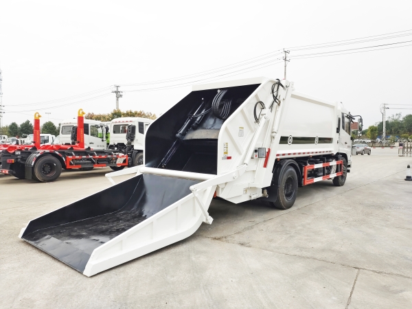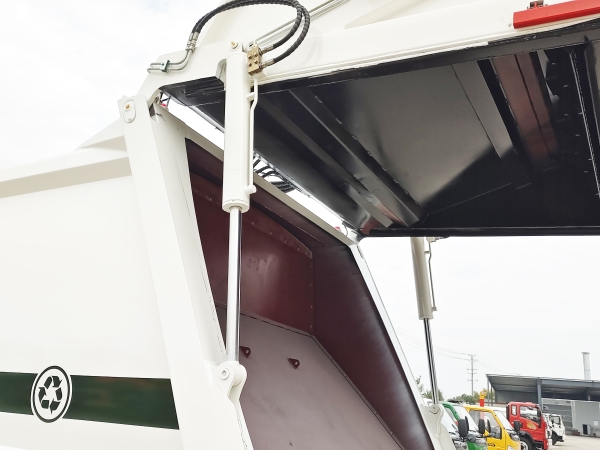 壓縮式垃圾車由密封式垃圾廂、液壓系統(tǒng)、操作系統(tǒng)組成。整車為全密封型,自行壓縮、自行傾倒、壓縮過程中的污水全部進(jìn)入污水廂,較為徹底的解決了垃圾運(yùn)輸過程中的二次污染的問題,避免了給人們帶來不便,關(guān)鍵部件采用進(jìn)口部件,具有壓力大、密封性好、操作方便、安全等優(yōu)點(diǎn)。 可選配后掛桶翻轉(zhuǎn)機(jī)構(gòu)或垃圾斗翻轉(zhuǎn)機(jī)構(gòu)。 專門用于收集城鎮(zhèn)居民生活垃圾和其他可壓縮垃圾的的環(huán)衛(wèi)專用車輛,壓縮式垃圾車由密封式垃圾箱、液壓系統(tǒng)、操作系統(tǒng)組成。整車為全密封型,自行壓縮、自行傾倒、壓縮過程中的污水全部進(jìn)入污水箱,較為徹底的解決了垃圾運(yùn)輸過程中的二次污染的問題,關(guān)鍵元器件采用進(jìn)口件,具有壓力大、密封性好、操作方便、安全省力等優(yōu)點(diǎn)。 主要有后裝壓縮式垃圾車和測(cè)裝壓縮式垃圾車,其中后裝壓縮式垃圾車可選配后掛桶收集裝置、鏟斗收集裝置、擺臂收集裝置、掛鐵通收集裝置,用戶可以根據(jù)不同需要選擇不同的收集裝置。