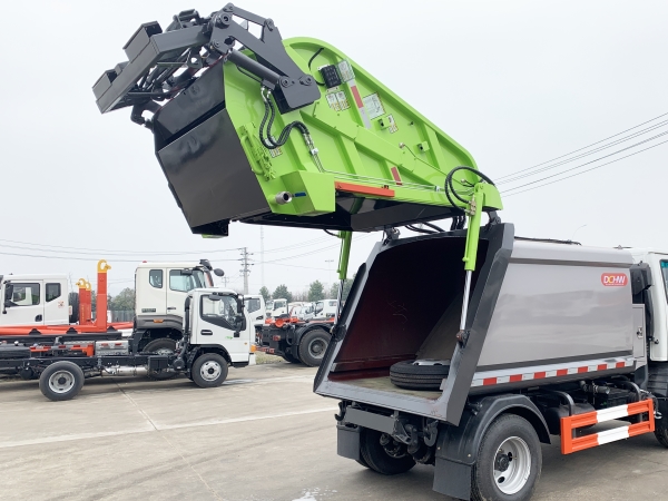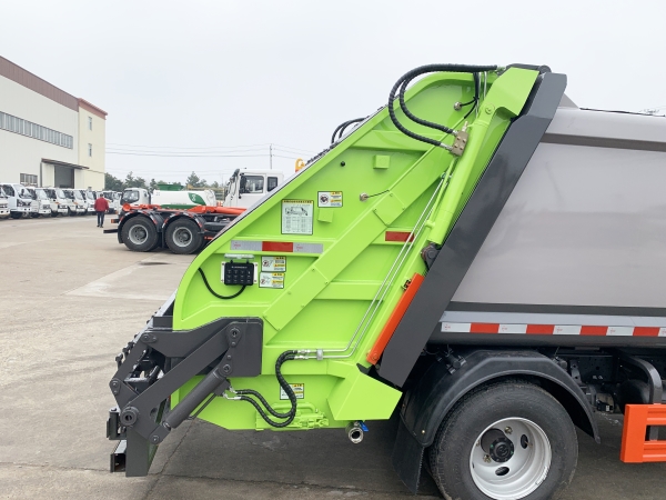壓縮式垃圾車由密封式垃圾廂、液壓系統(tǒng)、操作系統(tǒng)組成。整車為全密封型,自行壓縮、自行傾倒、壓縮過程中的污水全部進(jìn)入污水廂,較為徹底的解決了垃圾運(yùn)輸過程中的二次污染的問題,避免了給人們帶來不便,關(guān)鍵部件采用進(jìn)口部件,具有壓力大、密封性好、操作方便、安全等優(yōu)點(diǎn)。 可選配后掛桶翻轉(zhuǎn)機(jī)構(gòu)或垃圾斗翻轉(zhuǎn)機(jī)構(gòu)。 專門用于收集城鎮(zhèn)居民生活垃圾和其他可壓縮垃圾的的環(huán)衛(wèi)專用車輛,壓縮式垃圾車由密封式垃圾箱、液壓系統(tǒng)、操作系統(tǒng)組成。整車為全密封型,自行壓縮、自行傾倒、壓縮過程中的污水全部進(jìn)入污水箱,較為徹底的解決了垃圾運(yùn)輸過程中的二次污染的問題,關(guān)鍵元器件采用進(jìn)口件,具有壓力大、密封性好、操作方便、安全省力等優(yōu)點(diǎn)。 主要有后裝壓縮式垃圾車和測裝壓縮式垃圾車,其中后裝壓縮式垃圾車可選配后掛桶收集裝置、鏟斗收集裝置、擺臂收集裝置、掛鐵通收集裝置,用戶可以根據(jù)不同需要選擇不同的收集裝置。
