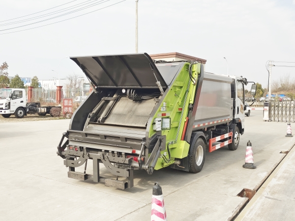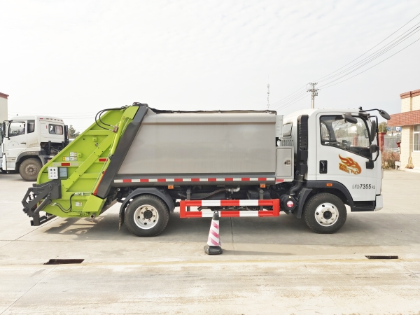 壓縮式垃圾車由密封式垃圾廂、液壓系統(tǒng)、操作系統(tǒng)組成。整車為全密封型,自行壓縮、自行傾倒、壓縮過程中的污水全部進(jìn)入污水廂,較為徹底的解決了垃圾運(yùn)輸過程中的二次污染的問題,避免了給人們帶來不便,關(guān)鍵部件采用進(jìn)口部件,具有壓力大、密封性好、操作方便、安全等優(yōu)點(diǎn)。 可選配后掛桶翻轉(zhuǎn)機(jī)構(gòu)或垃圾斗翻轉(zhuǎn)機(jī)構(gòu)。 專門用于收集城鎮(zhèn)居民生活垃圾和其他可壓縮垃圾的的環(huán)衛(wèi)專用車輛,壓縮式垃圾車由密封式垃圾箱、液壓系統(tǒng)、操作系統(tǒng)組成。整車為全密封型,自行壓縮、自行傾倒、壓縮過程中的污水全部進(jìn)入污水箱,較為徹底的解決了垃圾運(yùn)輸過程中的二次污染的問題,關(guān)鍵元器件采用進(jìn)口件,具有壓力大、密封性好、操作方便、安全省力等優(yōu)點(diǎn)。 主要有后裝壓縮式垃圾車和測裝壓縮式垃圾車,其中后裝壓縮式垃圾車可選配后掛桶收集裝置、鏟斗收集裝置、擺臂收集裝置、掛鐵通收集裝置,用戶可以根據(jù)不同需要選擇不同的收集裝置。