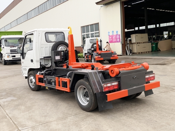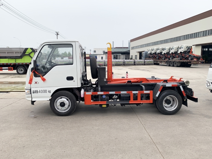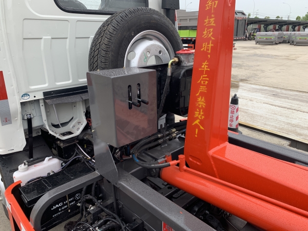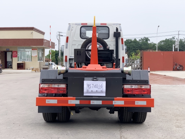車廂可卸載式垃圾車,又稱勾臂式垃圾車、拉臂式垃圾車。該車廣泛適用與城市街道學(xué)校垃圾處理,可一車配備多個斗,各個垃圾點(diǎn)放置多個,帶自卸功能,液壓操作,方便傾倒。在平日里可將車載垃圾箱放置到各個垃圾收集站,待垃圾收集滿后,該車可直接開赴至垃圾站,通過液壓系統(tǒng)的操控,可將垃圾車后座上加裝的勾臂放下,掛住站內(nèi)垃圾箱前端的連接點(diǎn),將垃圾箱拉至車體的后座上,此時即可啟動車輛,將垃圾運(yùn)送至垃圾處理站內(nèi),進(jìn)行自卸式傾倒。該車主要的優(yōu)點(diǎn)就是可一車配多斗,一輛車就可以維持?jǐn)?shù)個垃圾收集站的運(yùn)轉(zhuǎn),效率高,且箱體為密封式設(shè)計,不會造成二次污染。
