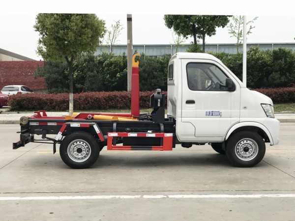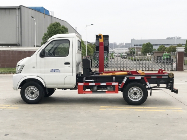 車廂可卸載式垃圾車,又稱勾臂式垃圾車、拉臂式垃圾車。該車廣泛適用與城市街道學(xué)校垃圾處理,可一車配備多個斗,各個垃圾點放置多個,帶自卸功能,液壓操作,方便傾倒。在平日里可將車載垃圾箱放置到各個垃圾收集站,待垃圾收集滿后,該車可直接開赴至垃圾站,通過液壓系統(tǒng)的操控,可將垃圾車后座上加裝的勾臂放下,掛住站內(nèi)垃圾箱前端的連接點,將垃圾箱拉至車體的后座上,此時即可啟動車輛,將垃圾運送至垃圾處理站內(nèi),進(jìn)行自卸式傾倒。該車主要的優(yōu)點就是可一車配多斗,一輛車就可以維持?jǐn)?shù)個垃圾收集站的運轉(zhuǎn),效率高,且箱體為密封式設(shè)計,不會造成二次污染。