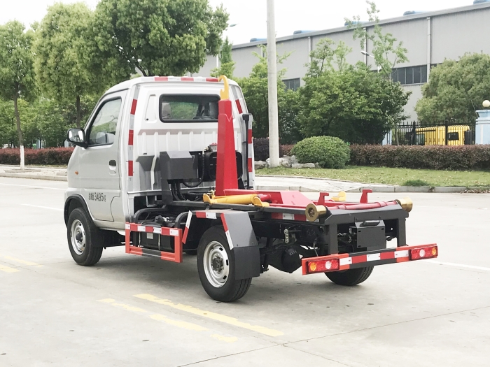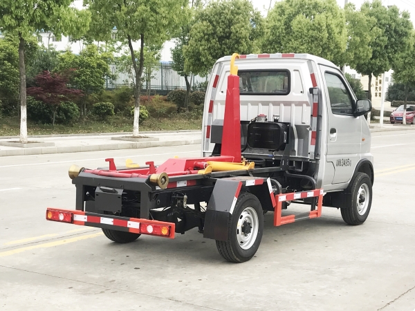 車廂可卸載式垃圾車,又稱勾臂式垃圾車、拉臂式垃圾車。該車廣泛適用與城市街道學(xué)校垃圾處理,可一車配備多個斗,各個垃圾點放置多個,帶自卸功能,液壓操作,方便傾倒。在平日里可將車載垃圾箱放置到各個垃圾收集站,待垃圾收集滿后,該車可直接開赴至垃圾站,通過液壓系統(tǒng)的操控,可將垃圾車后座上加裝的勾臂放下,掛住站內(nèi)垃圾箱前端的連接點,將垃圾箱拉至車體的后座上,此時即可啟動車輛,將垃圾運(yùn)送至垃圾處理站內(nèi),進(jìn)行自卸式傾倒。該車主要的優(yōu)點就是可一車配多斗,一輛車就可以維持?jǐn)?shù)個垃圾收集站的運(yùn)轉(zhuǎn),效率高,且箱體為密封式設(shè)計,不會造成二次污染。