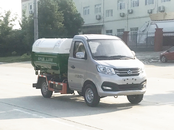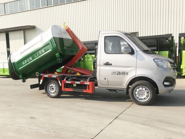 車廂可卸載式垃圾車,又稱勾臂式垃圾車、拉臂式垃圾車。該車廣泛適用與城市街道學(xué)校垃圾處理,可一車配備多個斗,各個垃圾點放置多個,帶自卸功能,液壓操作,方便傾倒。在平日里可將車載垃圾箱放置到各個垃圾收集站,待垃圾收集滿后,該車可直接開赴至垃圾站,通過液壓系統(tǒng)的操控,可將垃圾車后座上加裝的勾臂放下,掛住站內(nèi)垃圾箱前端的連接點,將垃圾箱拉至車體的后座上,此時即可啟動車輛,將垃圾運送至垃圾處理站內(nèi),進行自卸式傾倒。該車主要的優(yōu)點就是可一車配多斗,一輛車就可以維持數(shù)個垃圾收集站的運轉(zhuǎn),效率高,且箱體為密封式設(shè)計,不會造成二次污染。