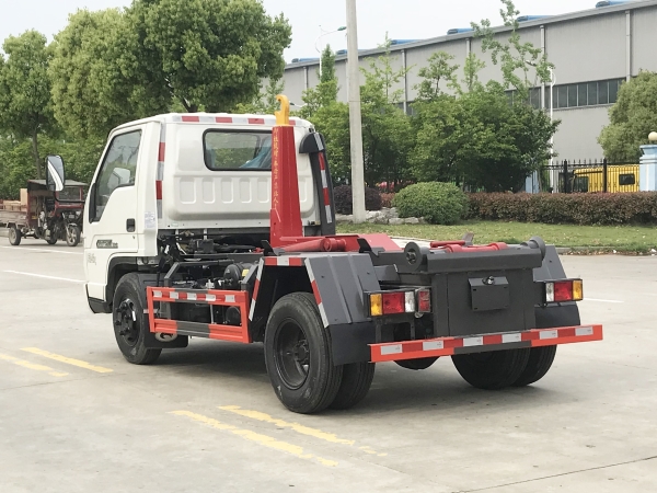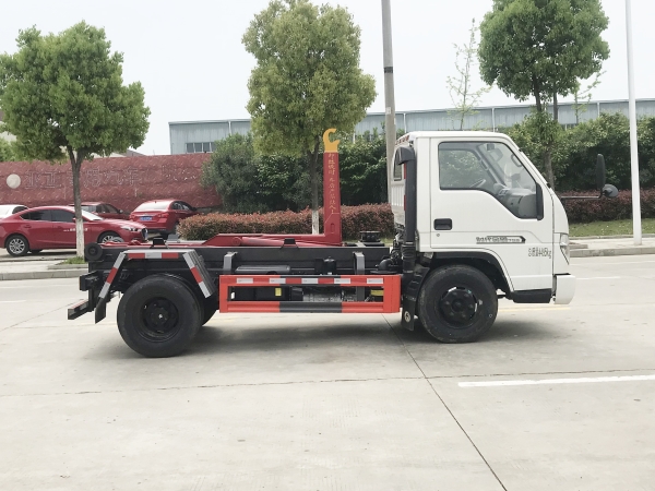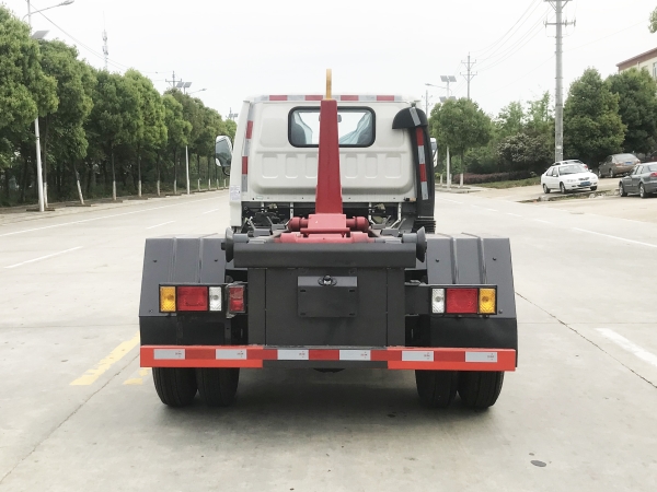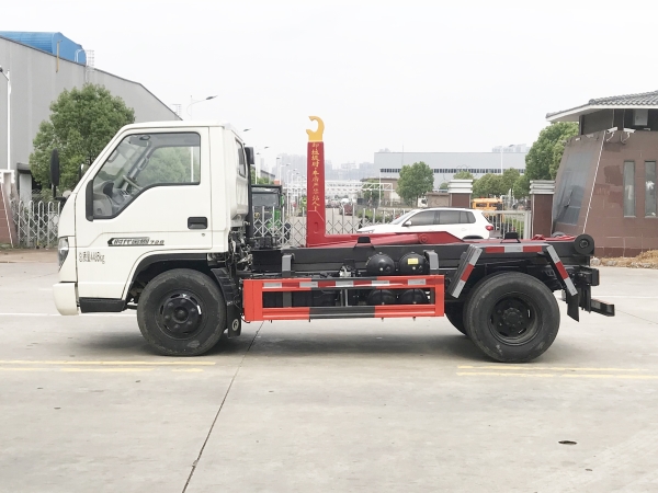 車廂可卸載式垃圾車,又稱勾臂式垃圾車、拉臂式垃圾車。該車廣泛適用與城市街道學(xué)校垃圾處理,可一車配備多個(gè)斗,各個(gè)垃圾點(diǎn)放置多個(gè),帶自卸功能,液壓操作,方便傾倒。在平日里可將車載垃圾箱放置到各個(gè)垃圾收集站,待垃圾收集滿后,該車可直接開(kāi)赴至垃圾站,通過(guò)液壓系統(tǒng)的操控,可將垃圾車后座上加裝的勾臂放下,掛住站內(nèi)垃圾箱前端的連接點(diǎn),將垃圾箱拉至車體的后座上,此時(shí)即可啟動(dòng)車輛,將垃圾運(yùn)送至垃圾處理站內(nèi),進(jìn)行自卸式傾倒。該車主要的優(yōu)點(diǎn)就是可一車配多斗,一輛車就可以維持?jǐn)?shù)個(gè)垃圾收集站的運(yùn)轉(zhuǎn),效率高,且箱體為密封式設(shè)計(jì),不會(huì)造成二次污染。