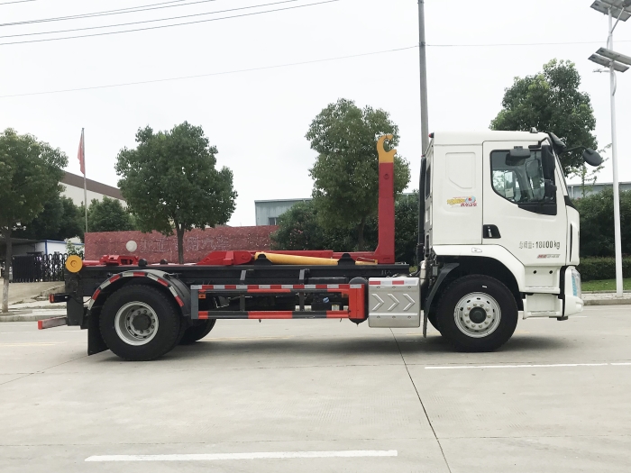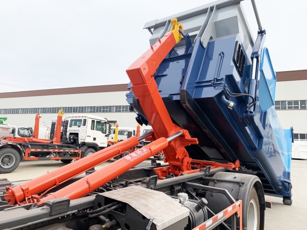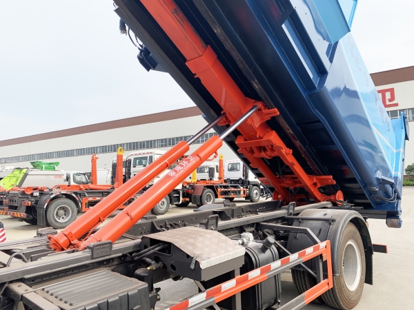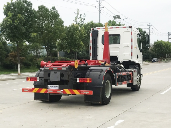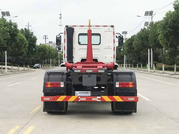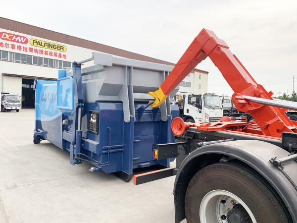 車廂可卸載式垃圾車,又稱勾臂式垃圾車、拉臂式垃圾車。該車廣泛適用與城市街道學(xué)校垃圾處理,可一車配備多個(gè)斗,各個(gè)垃圾點(diǎn)放置多個(gè),帶自卸功能,液壓操作,方便傾倒。在平日里可將車載垃圾箱放置到各個(gè)垃圾收集站,待垃圾收集滿后,該車可直接開(kāi)赴至垃圾站,通過(guò)液壓系統(tǒng)的操控,可將垃圾車后座上加裝的勾臂放下,掛住站內(nèi)垃圾箱前端的連接點(diǎn),將垃圾箱拉至車體的后座上,此時(shí)即可啟動(dòng)車輛,將垃圾運(yùn)送至垃圾處理站內(nèi),進(jìn)行自卸式傾倒。該車主要的優(yōu)點(diǎn)就是可一車配多斗,一輛車就可以維持?jǐn)?shù)個(gè)垃圾收集站的運(yùn)轉(zhuǎn),效率高,且箱體為密封式設(shè)計(jì),不會(huì)造成二次污染。