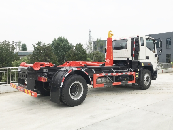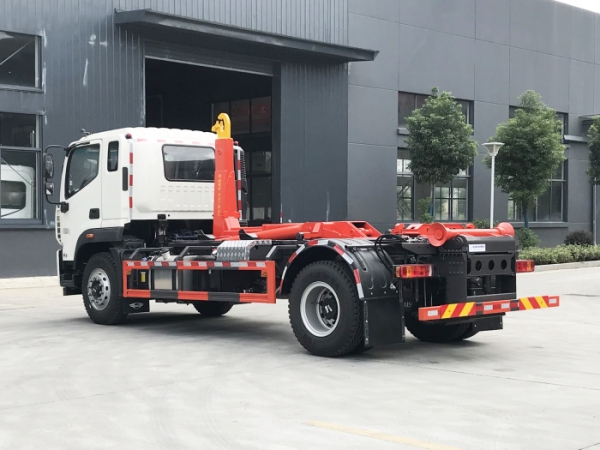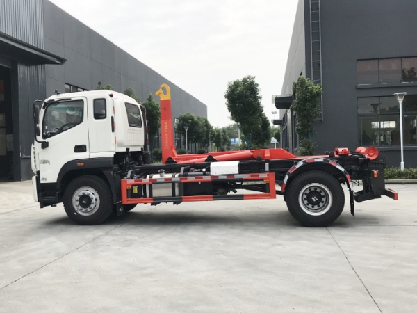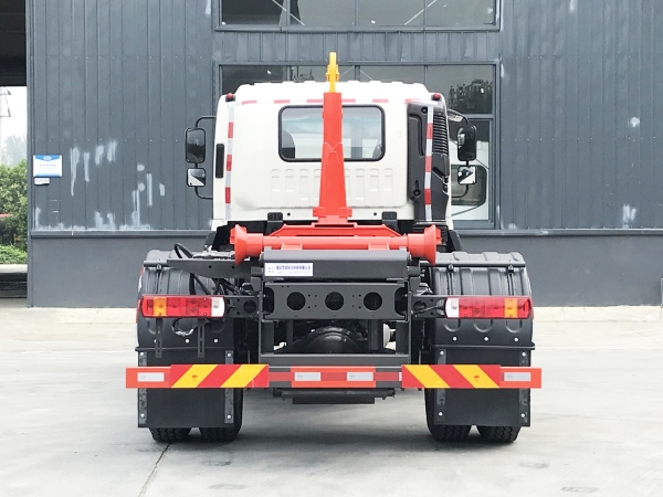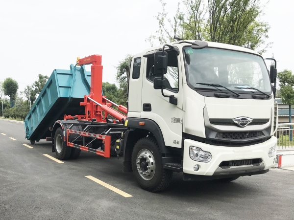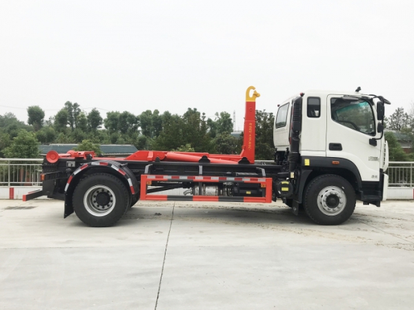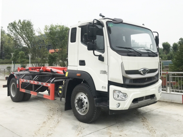 車廂可卸載式垃圾車,又稱勾臂式垃圾車、拉臂式垃圾車。該車廣泛適用與城市街道學(xué)校垃圾處理,可一車配備多個斗,各個垃圾點放置多個,帶自卸功能,液壓操作,方便傾倒。在平日里可將車載垃圾箱放置到各個垃圾收集站,待垃圾收集滿后,該車可直接開赴至垃圾站,通過液壓系統(tǒng)的操控,可將垃圾車后座上加裝的勾臂放下,掛住站內(nèi)垃圾箱前端的連接點,將垃圾箱拉至車體的后座上,此時即可啟動車輛,將垃圾運(yùn)送至垃圾處理站內(nèi),進(jìn)行自卸式傾倒。該車主要的優(yōu)點就是可一車配多斗,一輛車就可以維持?jǐn)?shù)個垃圾收集站的運(yùn)轉(zhuǎn),效率高,且箱體為密封式設(shè)計,不會造成二次污染。