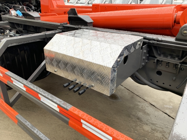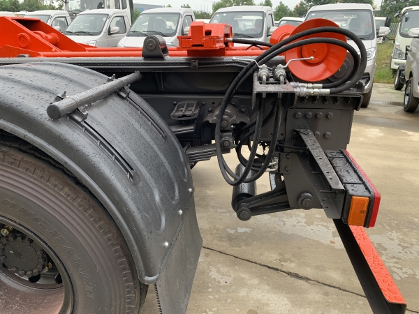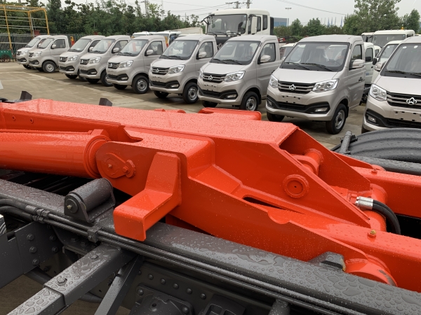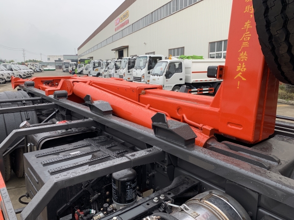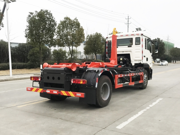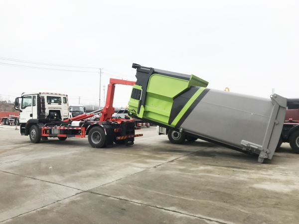 車廂可卸載式垃圾車,又稱勾臂式垃圾車、拉臂式垃圾車。該車廣泛適用與城市街道學(xué)校垃圾處理,可一車配備多個(gè)斗,各個(gè)垃圾點(diǎn)放置多個(gè),帶自卸功能,液壓操作,方便傾倒。在平日里可將車載垃圾箱放置到各個(gè)垃圾收集站,待垃圾收集滿后,該車可直接開赴至垃圾站,通過液壓系統(tǒng)的操控,可將垃圾車后座上加裝的勾臂放下,掛住站內(nèi)垃圾箱前端的連接點(diǎn),將垃圾箱拉至車體的后座上,此時(shí)即可啟動(dòng)車輛,將垃圾運(yùn)送至垃圾處理站內(nèi),進(jìn)行自卸式傾倒。該車主要的優(yōu)點(diǎn)就是可一車配多斗,一輛車就可以維持?jǐn)?shù)個(gè)垃圾收集站的運(yùn)轉(zhuǎn),效率高,且箱體為密封式設(shè)計(jì),不會(huì)造成二次污染。