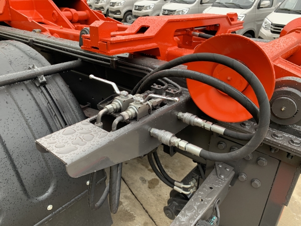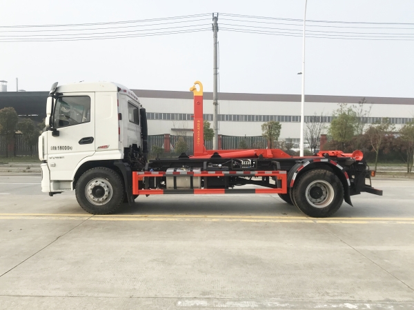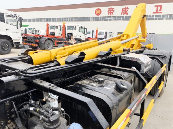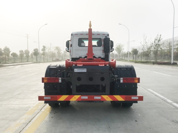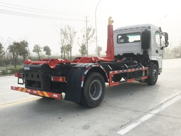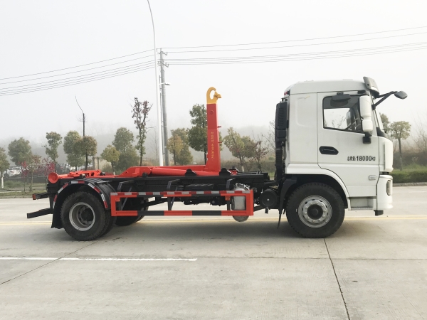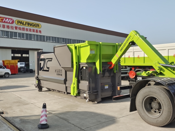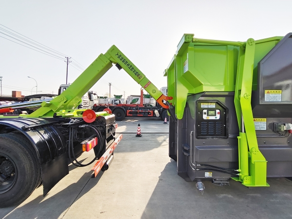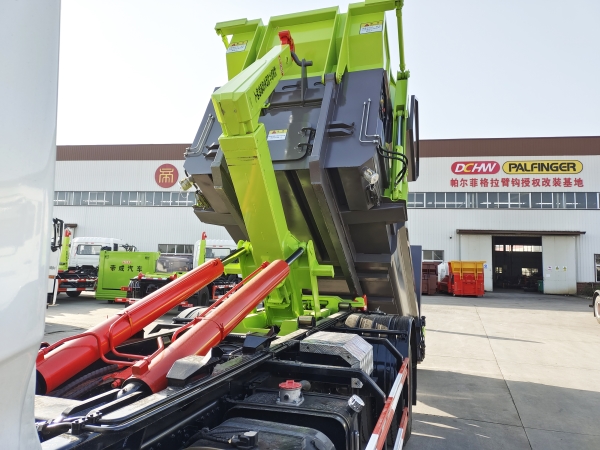 車廂可卸載式垃圾車,又稱勾臂式垃圾車、拉臂式垃圾車。該車廣泛適用與城市街道學校垃圾處理,可一車配備多個斗,各個垃圾點放置多個,帶自卸功能,液壓操作,方便傾倒。在平日里可將車載垃圾箱放置到各個垃圾收集站,待垃圾收集滿后,該車可直接開赴至垃圾站,通過液壓系統(tǒng)的操控,可將垃圾車后座上加裝的勾臂放下,掛住站內垃圾箱前端的連接點,將垃圾箱拉至車體的后座上,此時即可啟動車輛,將垃圾運送至垃圾處理站內,進行自卸式傾倒。該車主要的優(yōu)點就是可一車配多斗,一輛車就可以維持數(shù)個垃圾收集站的運轉,效率高,且箱體為密封式設計,不會造成二次污染。