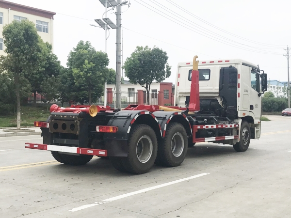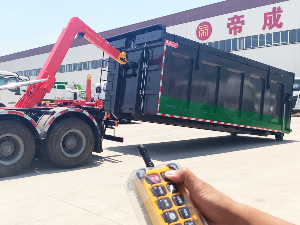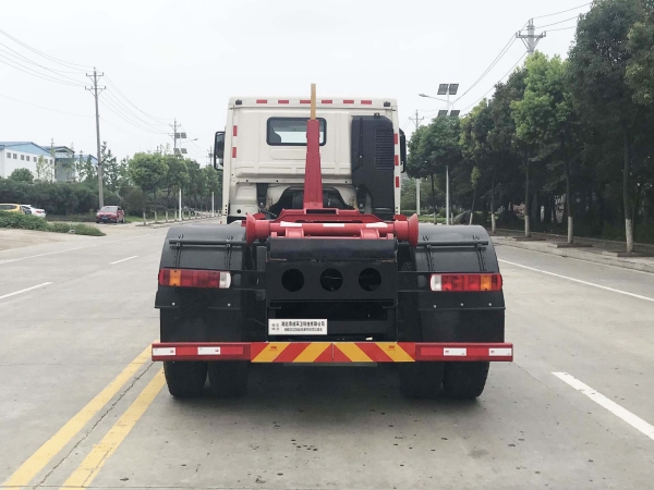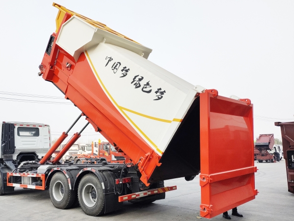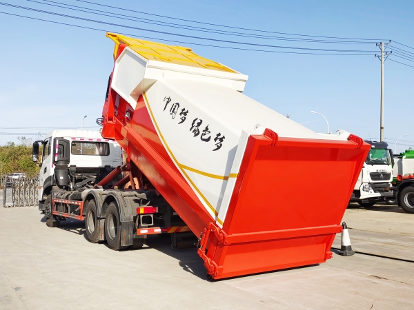 車廂可卸載式垃圾車,又稱勾臂式垃圾車、拉臂式垃圾車。該車廣泛適用與城市街道學(xué)校垃圾處理,可一車配備多個(gè)斗,各個(gè)垃圾點(diǎn)放置多個(gè),帶自卸功能,液壓操作,方便傾倒。在平日里可將車載垃圾箱放置到各個(gè)垃圾收集站,待垃圾收集滿后,該車可直接開赴至垃圾站,通過液壓系統(tǒng)的操控,可將垃圾車后座上加裝的勾臂放下,掛住站內(nèi)垃圾箱前端的連接點(diǎn),將垃圾箱拉至車體的后座上,此時(shí)即可啟動(dòng)車輛,將垃圾運(yùn)送至垃圾處理站內(nèi),進(jìn)行自卸式傾倒。該車主要的優(yōu)點(diǎn)就是可一車配多斗,一輛車就可以維持?jǐn)?shù)個(gè)垃圾收集站的運(yùn)轉(zhuǎn),效率高,且箱體為密封式設(shè)計(jì),不會(huì)造成二次污染。