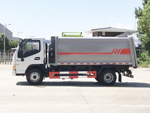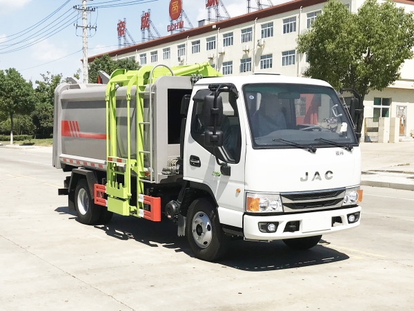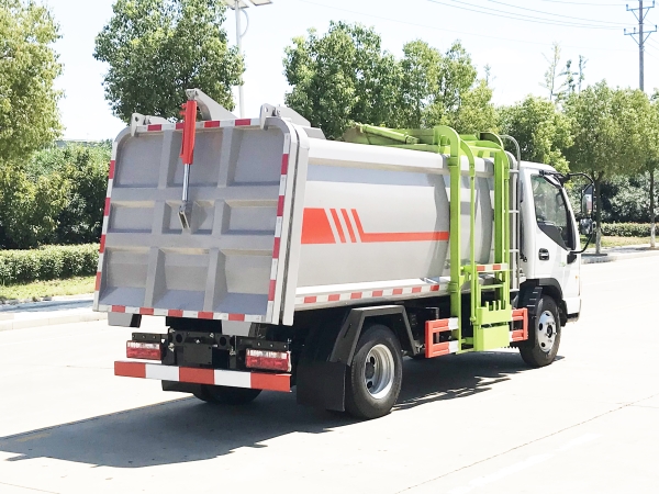 自裝卸式垃圾車是收集、中轉(zhuǎn)清理運(yùn)輸垃圾,避免二次污染的新型環(huán)衛(wèi)車輛,其主要特點(diǎn)是垃圾收集方式簡(jiǎn)便、高效、環(huán)保性好,整車?yán)眯矢?,廣泛適用于環(huán)衛(wèi)、市政、物業(yè)小區(qū)、垃圾多而集中的居民區(qū)、城市街道垃圾處理,均具有密封自卸功能,液壓操作,傾卸垃圾方便。 在底盤(pán)的基礎(chǔ)上,加裝垃圾箱體、連接附件、防護(hù)欄及液壓系統(tǒng)等裝置。具有操作安全、使用性能穩(wěn)定、返修率低、售后服務(wù)及時(shí)周到等特點(diǎn)。本產(chǎn)品主要用于收集與轉(zhuǎn)運(yùn)城市住宅小區(qū)、鄉(xiāng)鎮(zhèn)街道等產(chǎn)生的生活垃圾。整車小巧靈活,行動(dòng)方便,適應(yīng)人流密集的商業(yè)區(qū)域和道路交通情況較差的城鄉(xiāng)地區(qū)。本車配有側(cè)掛桶進(jìn)料機(jī)構(gòu),在翻桶處操作,可與120L/240L標(biāo)準(zhǔn)塑料桶對(duì)接。整車具有自卸功能,卸料方便。
